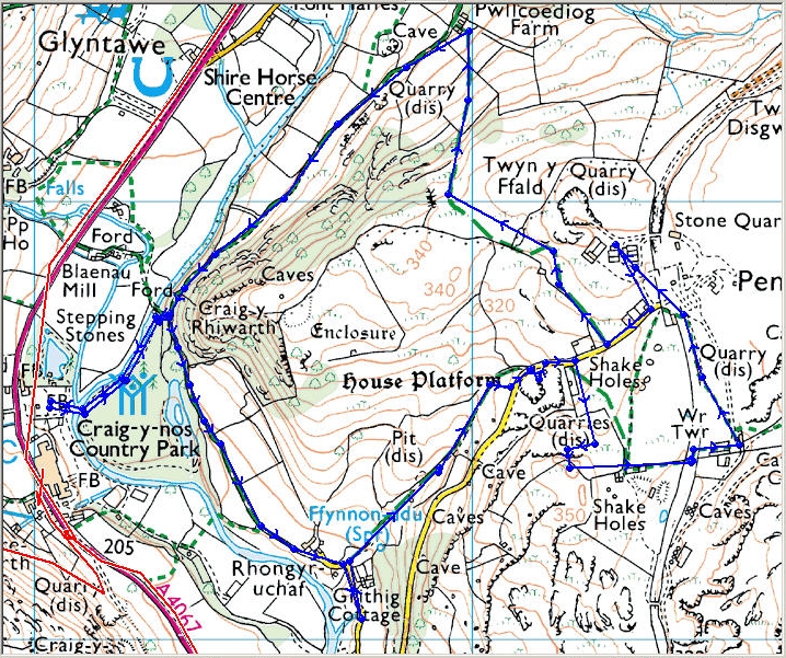 Image produced using Memory-Map 'Brecon Beacons and Pembrokeshire 1:25,000 'OS Edition 2004 v 4.2.1'. Image reproduced with kind permission of Ordnance Survey.